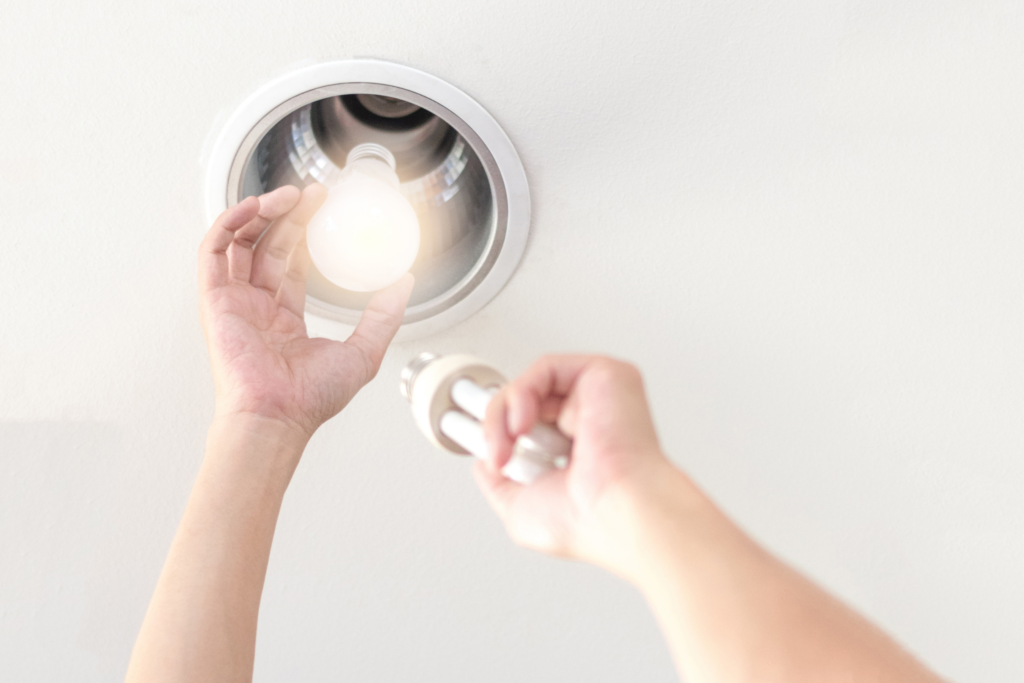 石黒組では、照明器具から発する熱量の抑制と、CO2排出量の低減に貢献するためにも事務所の照明をすべてLED化しています。また、計画的に電気の消灯を行い電気使用量の低減を実施しています。